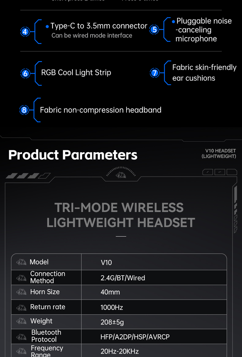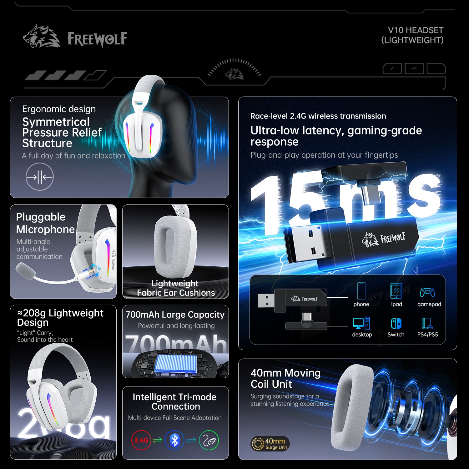 Özgür Kurt V10 Kablosuz Üç Modlu RGB Kulaklık