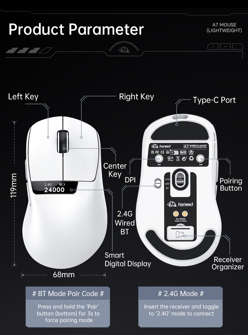 Özgür Kurt A7 Kablosuz Üç Modlu Fare