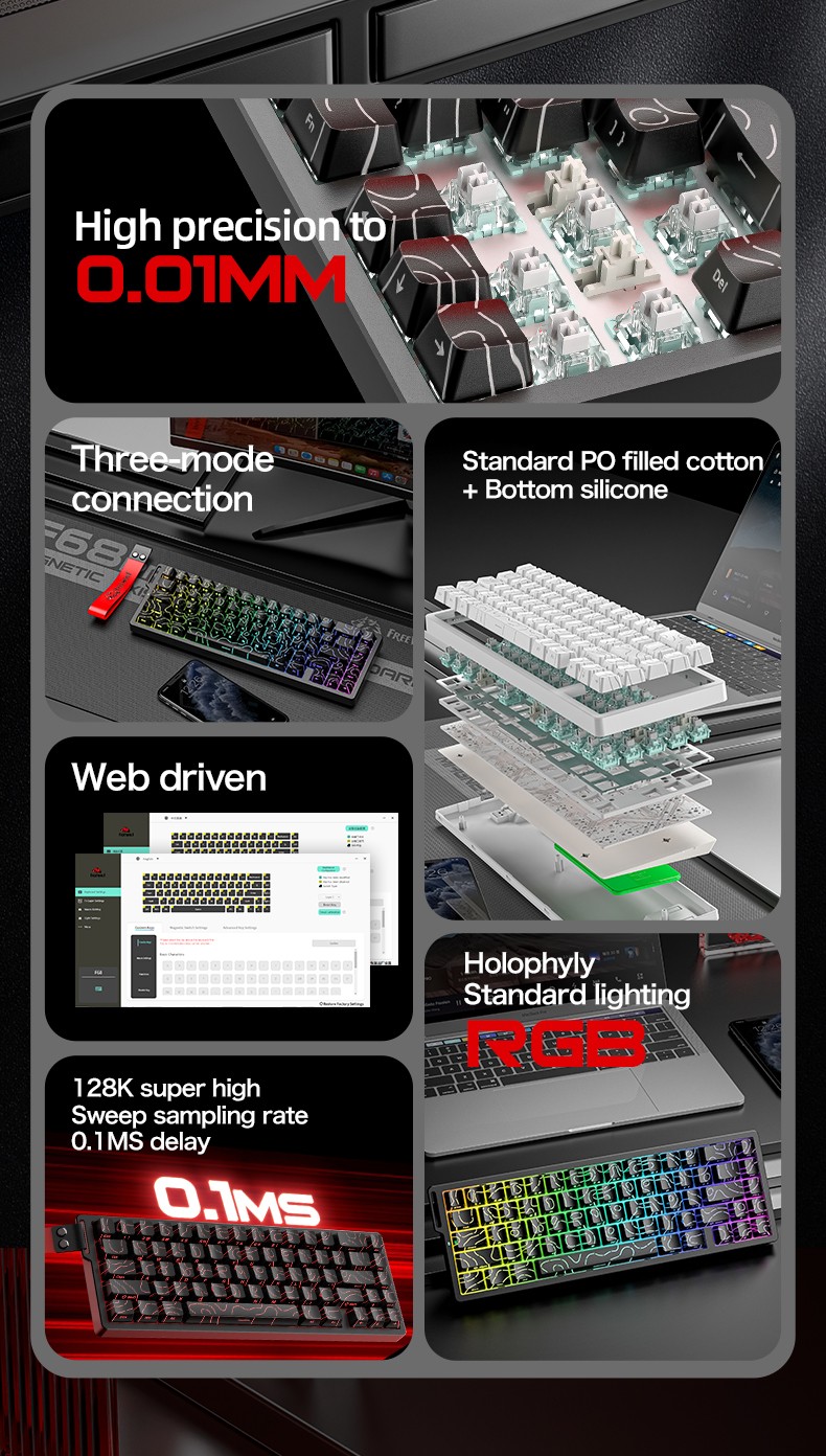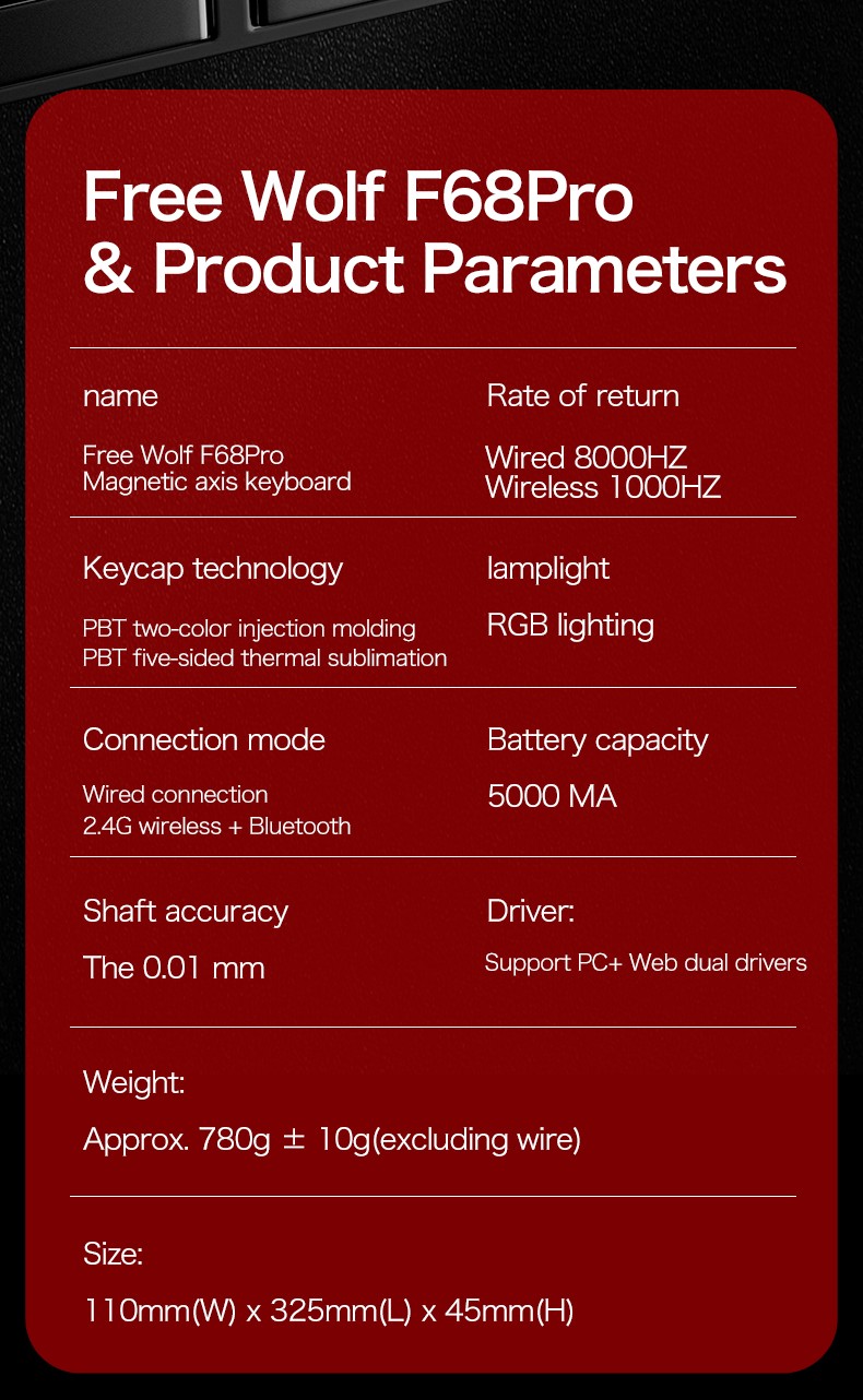 Özgür Kurt F68 Kablolu RGB Manyetik Eksen Klavyesi